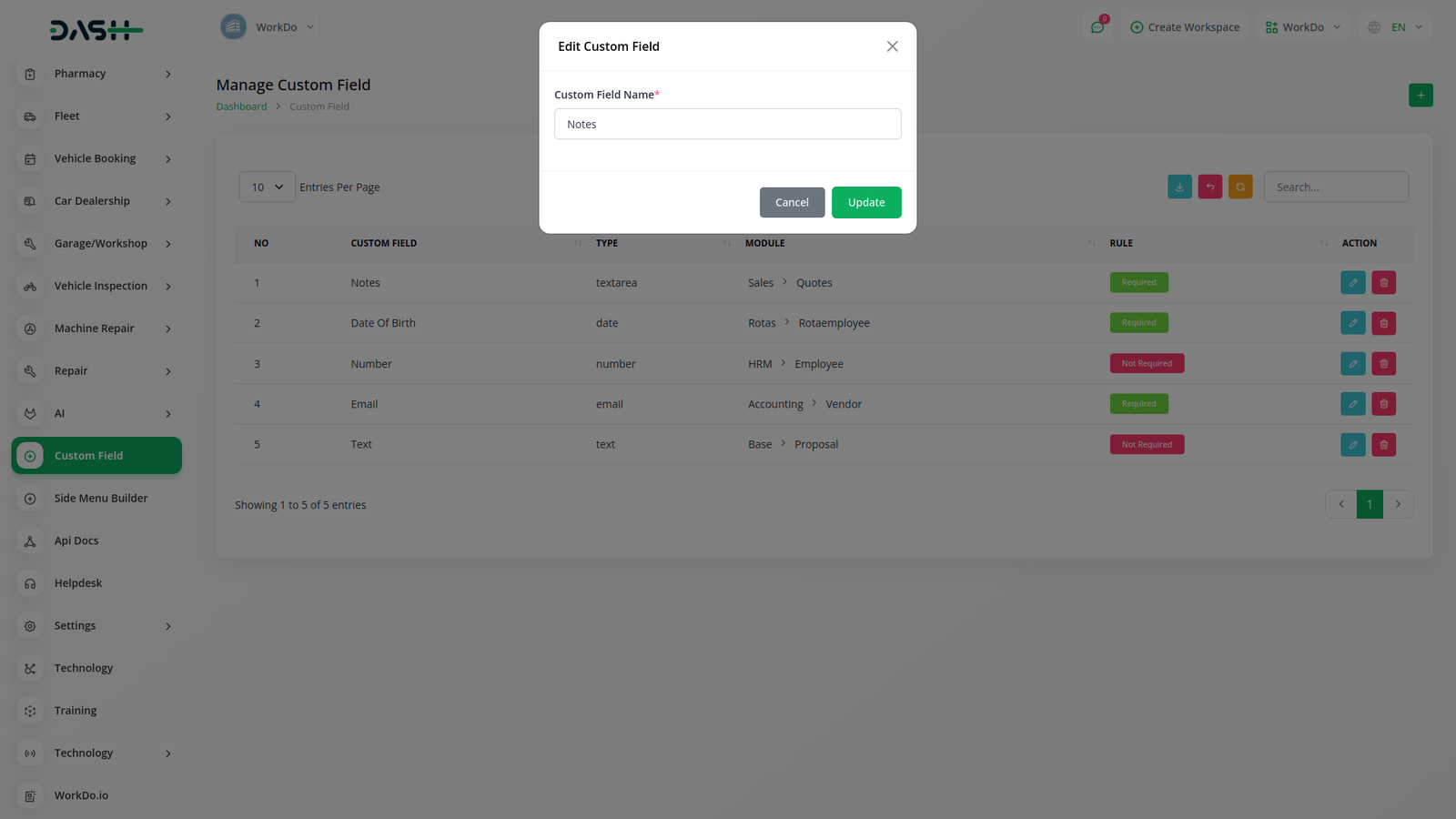 Custom Filed use in HRM, Account, Lead, Assests, Contract, Performance, Pos, Retainer, Sales, Taskly all modules.You can using custom filed collect additional information about all modules as you like.